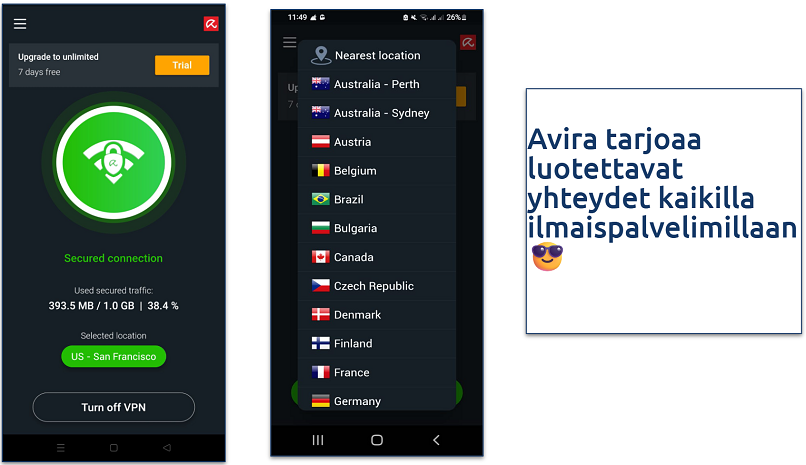 4. Avira Phantom VPN – Rajoittamaton yhteyttä kaikkien Android-laitteiden (ja muiden) suojaamiseksi